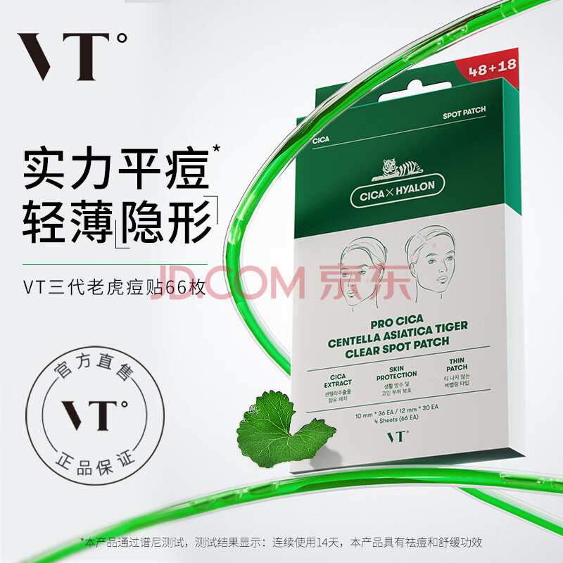 商品相册:VT老虎痘痘贴三代66枚/袋 消炎吸脓隐形服帖镇静舒缓祛痘新年礼物第1张/共9