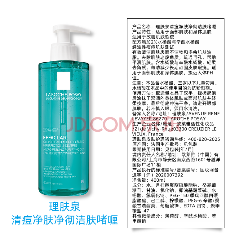 商品相册:理肤泉水杨酸洁肤啫喱400ml控油祛痘全身清洁护肤品生日礼物送女友第