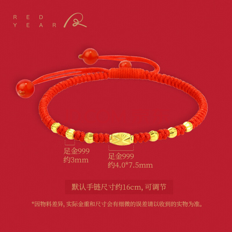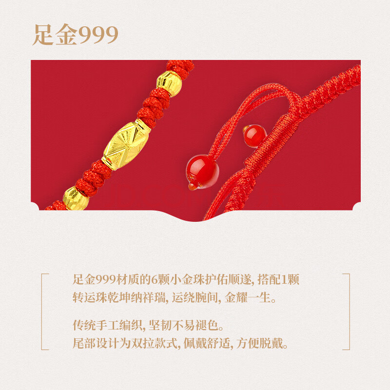 商品相册:红色年轮黄金转运珠红绳手链一生一世本命年路路通男女百搭女神520礼物第