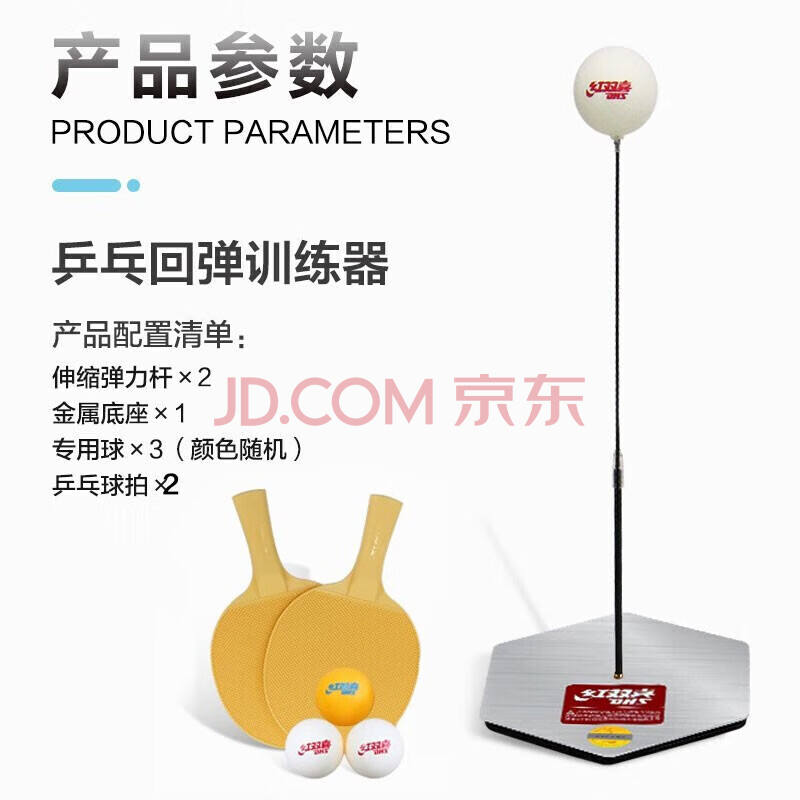 商品相册:红双喜乒乓球网红自练神器弹力室内家用儿童玩具附乒乓球拍 金属底座第
