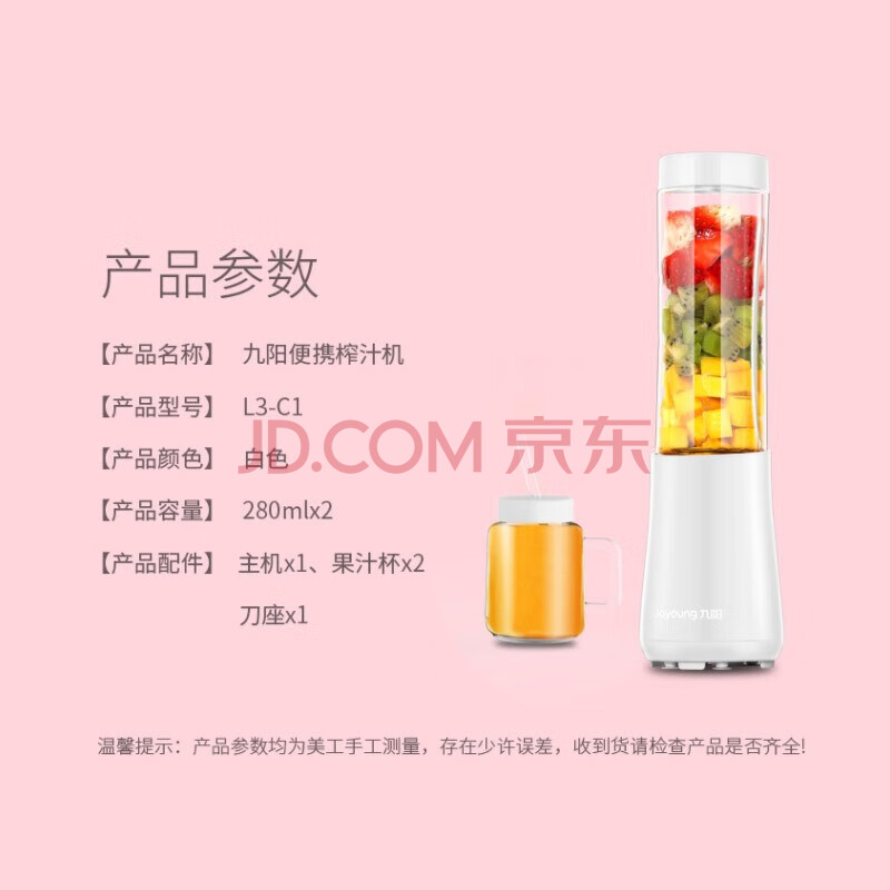 商品相册:九阳(Joyoung)榨汁机迷你果汁机多功能榨汁杯双杯果汁杯可打小米糊 L3-C1 白色【企业采购】【支持一件代发】第1张/共8