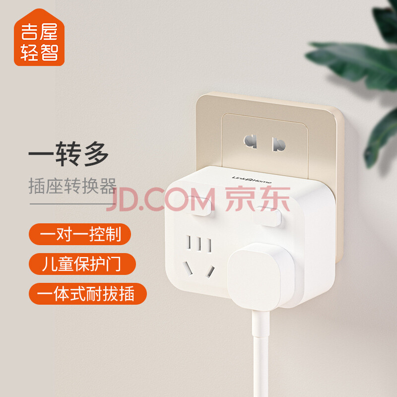 商品相册:吉屋轻智转换插头/一转二插座/无线转换插座/电源转换器 适用于卧室、厨房 2位分控插座第