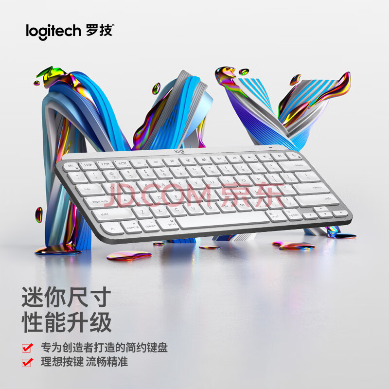 商品相册:罗技(Logitech)大师系列 MX Keys Mini 简约无线蓝牙 高端办公键盘 智能 背光时尚 超薄便携 浅灰色 79键第