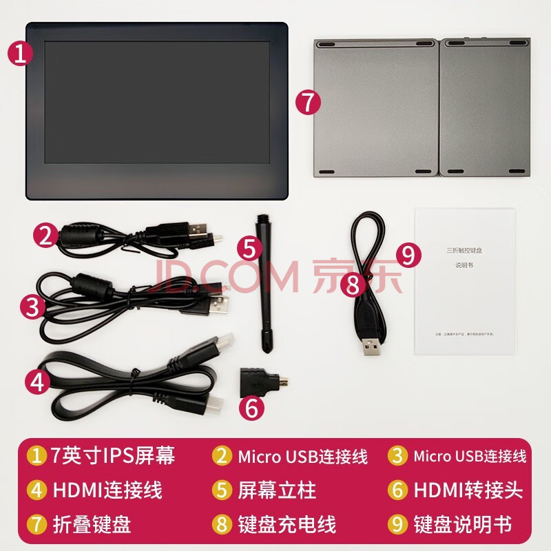商品相册:丢石头 树莓派屏幕键盘配件包 7英寸IPS电容触控屏 无线蓝牙键盘 兼容4b 3b+等型号主板第