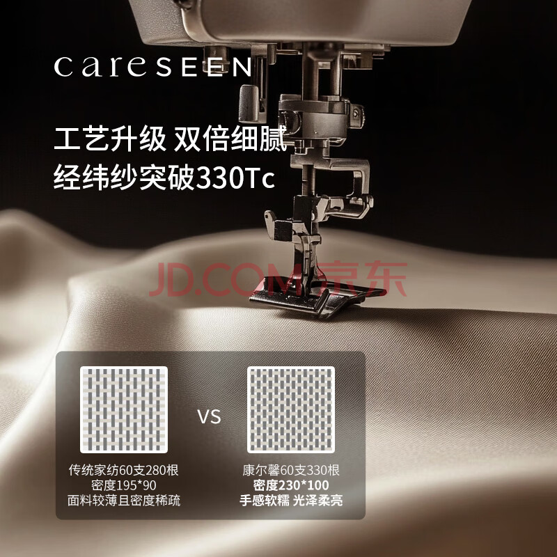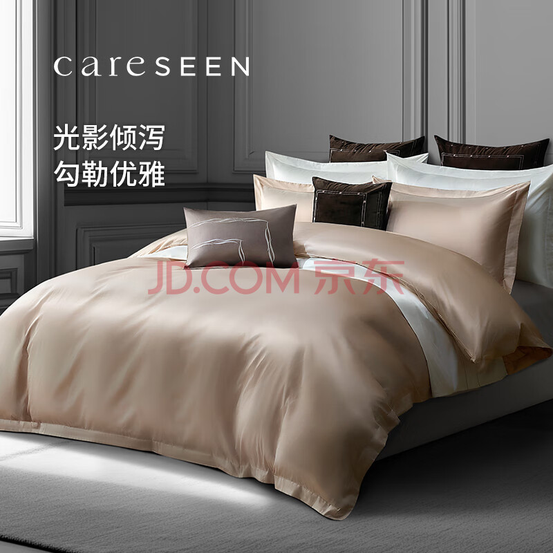 商品相册:康尔馨五星级酒店床品A类60支纯棉贡缎简约四件套全棉被套浅驼色1.5米床第