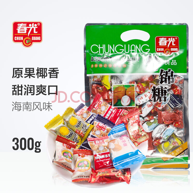 商品相册:春光食品 海南特产 什锦椰子糖 300g 水果混合糖儿童休闲糖果婚庆喜糖第