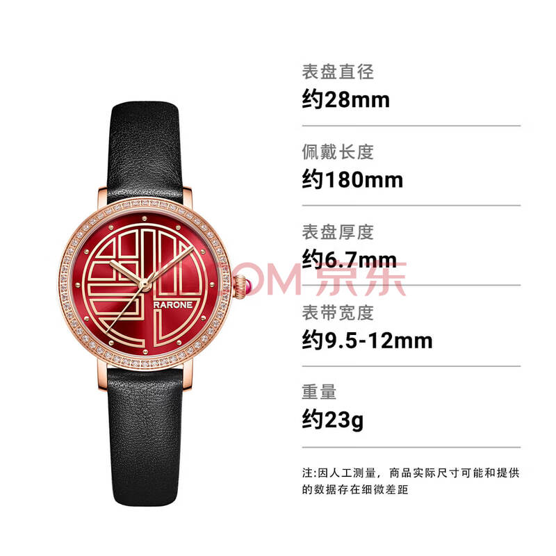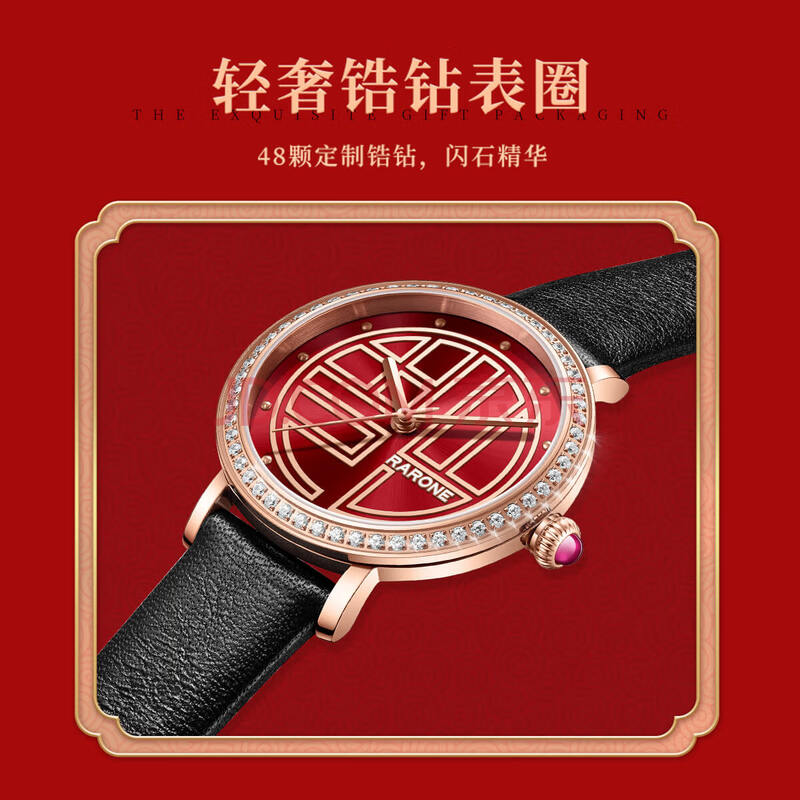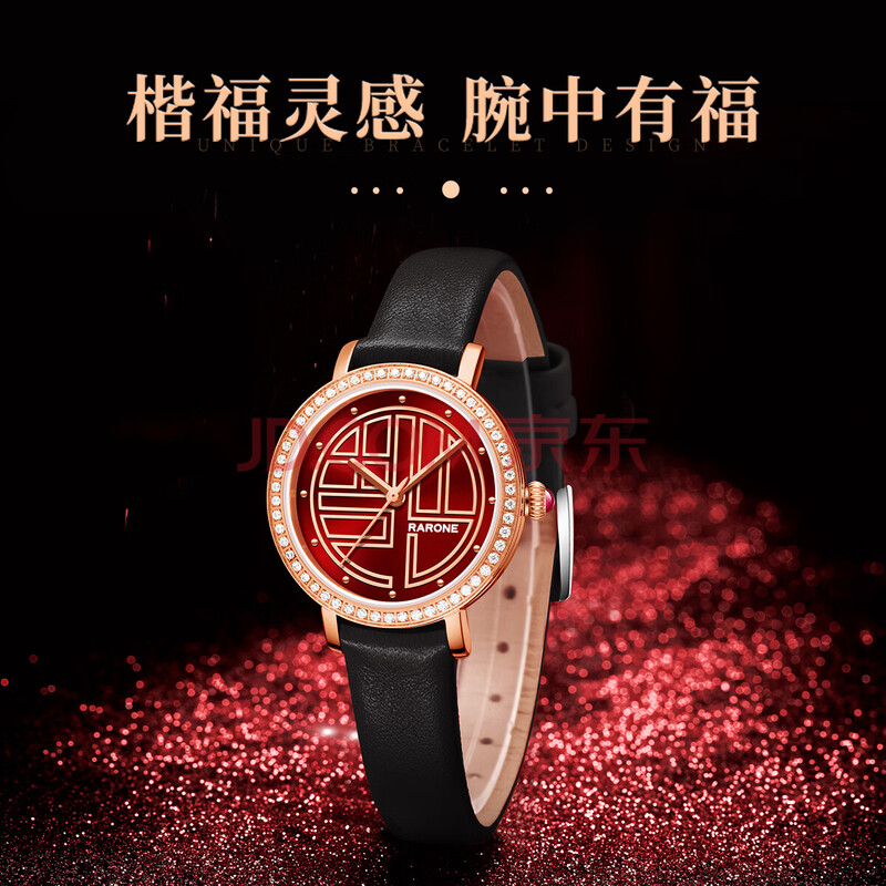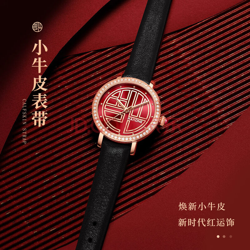 商品相册:雷诺(RARONE)【腕得福】暴福品牌国表女士手表红色面石英皮带生日礼物送女生第