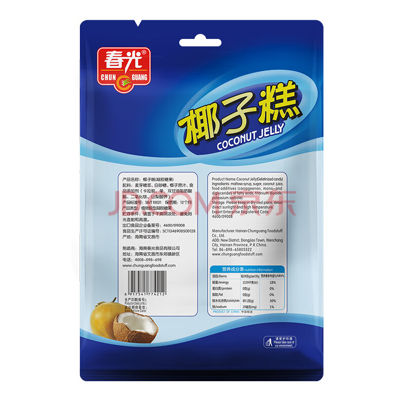 商品相册:春光食品 海南特产 椰子糕 160g 儿童水果软糖 婚庆喜糖 休闲零食第