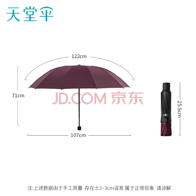 商品相册:天堂 防晒晴雨伞三折 三折伞防紫外线商务伞升级黑钢伞 红色第