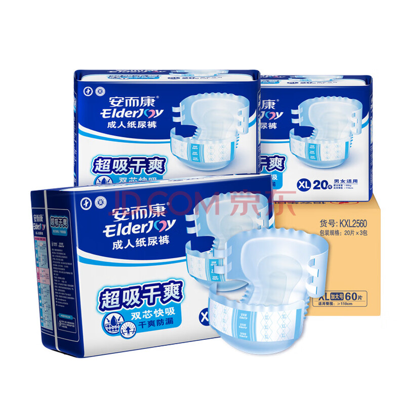 商品相册:安而康(Elderjoy)超吸干爽成人纸尿裤XL60片臀围>110cm成人尿不湿老人快吸防漏第