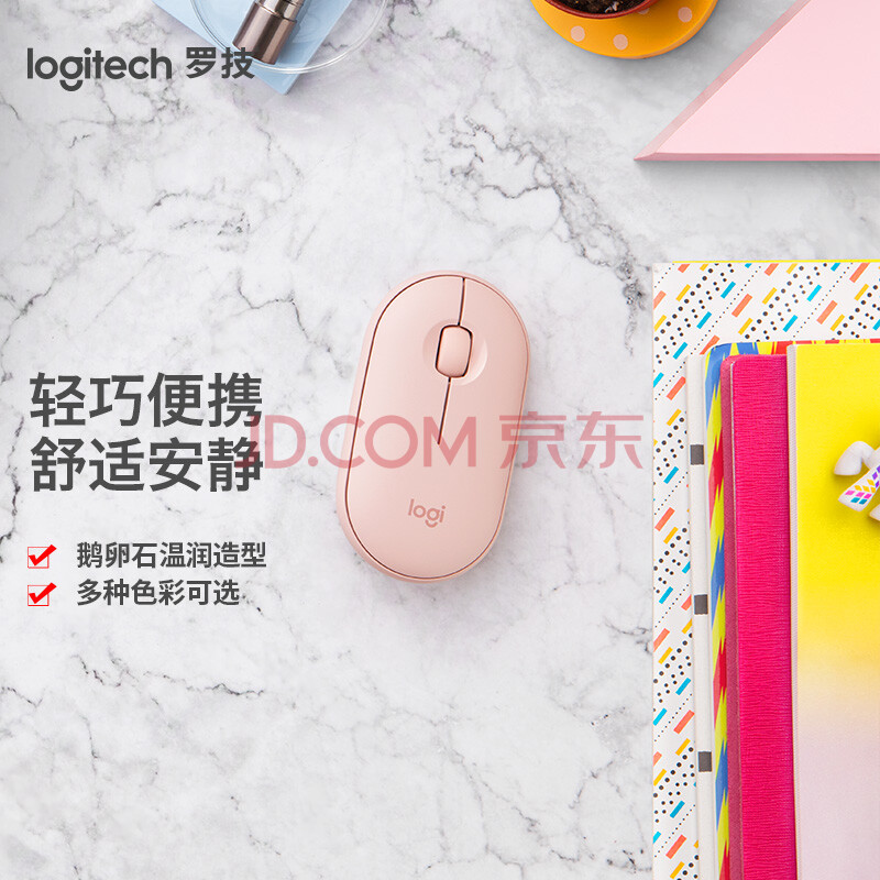 商品相册:罗技(Logitech)时尚系列 PEBBLE鼠标 无线蓝牙鼠标 办公静音鼠标 鼠标对称鼠标 鹅卵石造型 玫瑰粉第