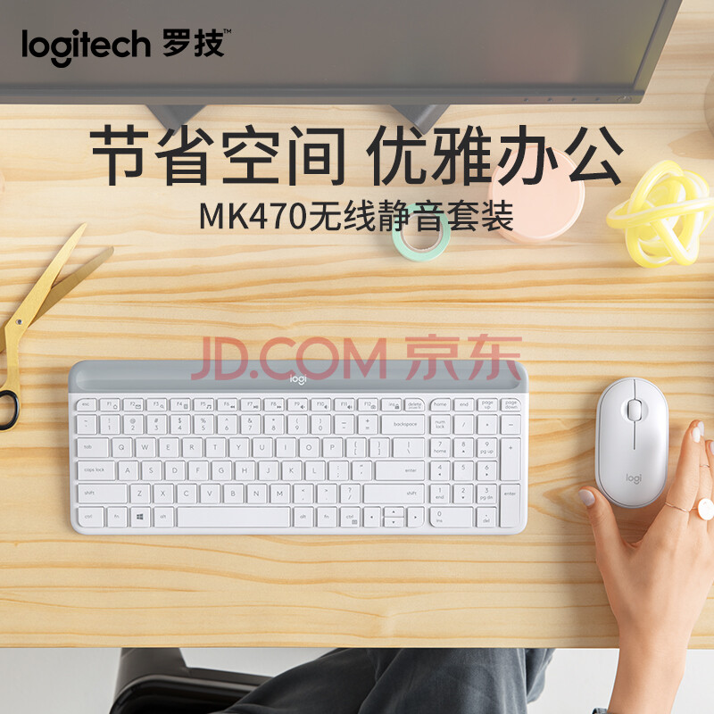商品相册:罗技(Logitech)时尚系列 MK470 键鼠套装 无线键鼠套装 超薄 全尺寸 芍药白 带无线2.4G接收器第