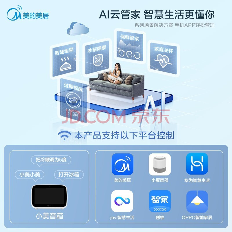 商品相册: 美的 BCD-508WTPZM(E)多门对开冰箱19分钟急速净味除菌 一级能效双变频智能温湿精控家用电冰箱第