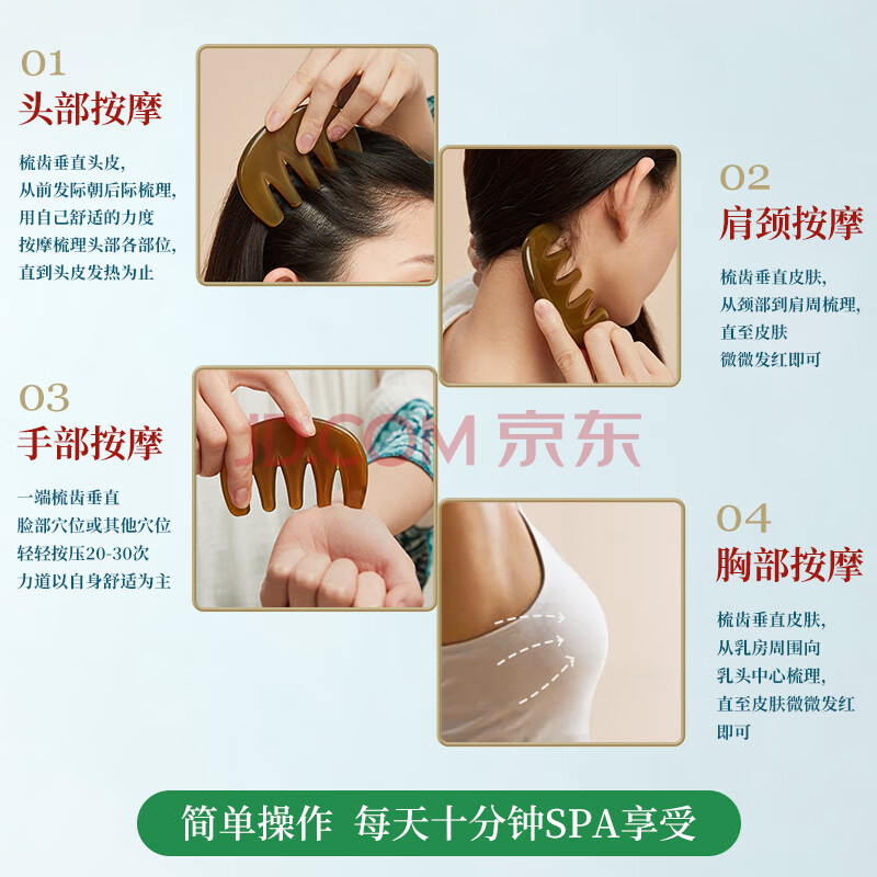 商品相册:牧遇天然牦牛角梳子男士专用木梳头皮头部按摩经络梳宽齿五爪五指宽齿第