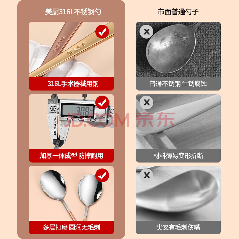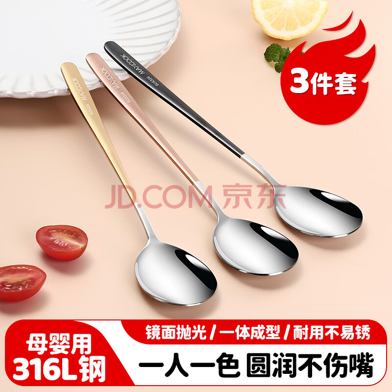 商品相册:美厨(maxcook)316L不锈钢汤勺汤匙 勺子圆底餐勺饭勺汤勺 彩色3件套 MCGC3424第