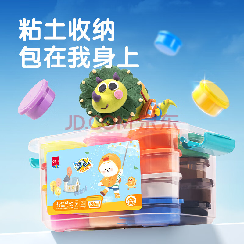 商品相册:得力(deli)36色超轻粘土盒装黏土彩泥橡皮泥太空沙手工玩具美术密封罐易收纳儿童幼儿园生日礼物开学文具第