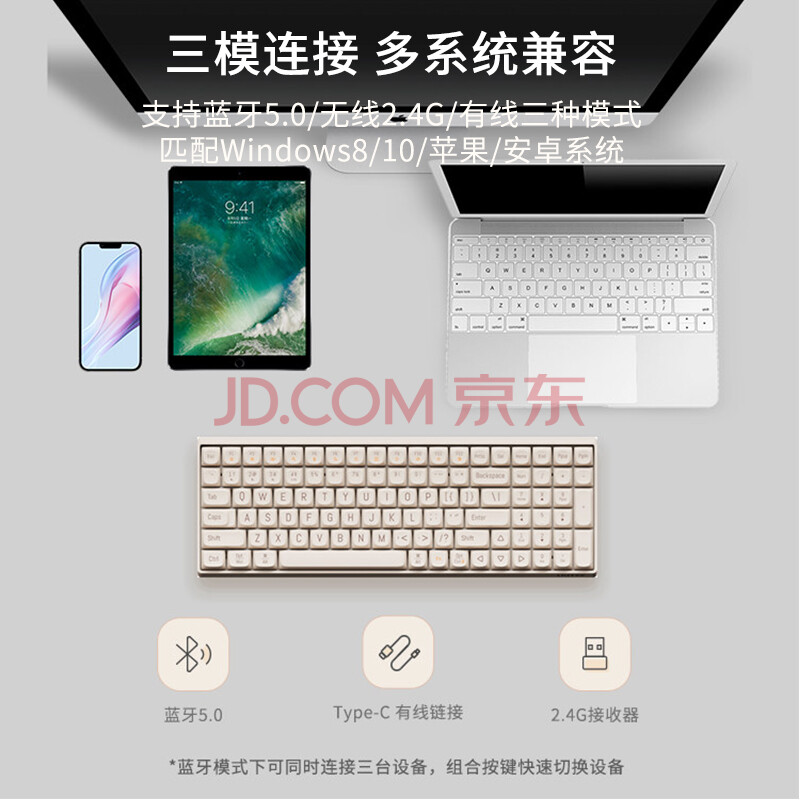商品相册:洛斐(Lofree)小翘三模无线蓝牙机械键盘办公无线热拔插多系统兼容连接 豆腐小翘100键键盘第