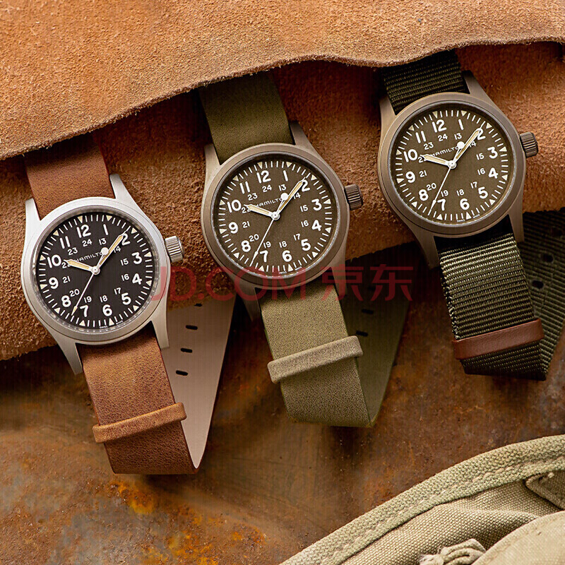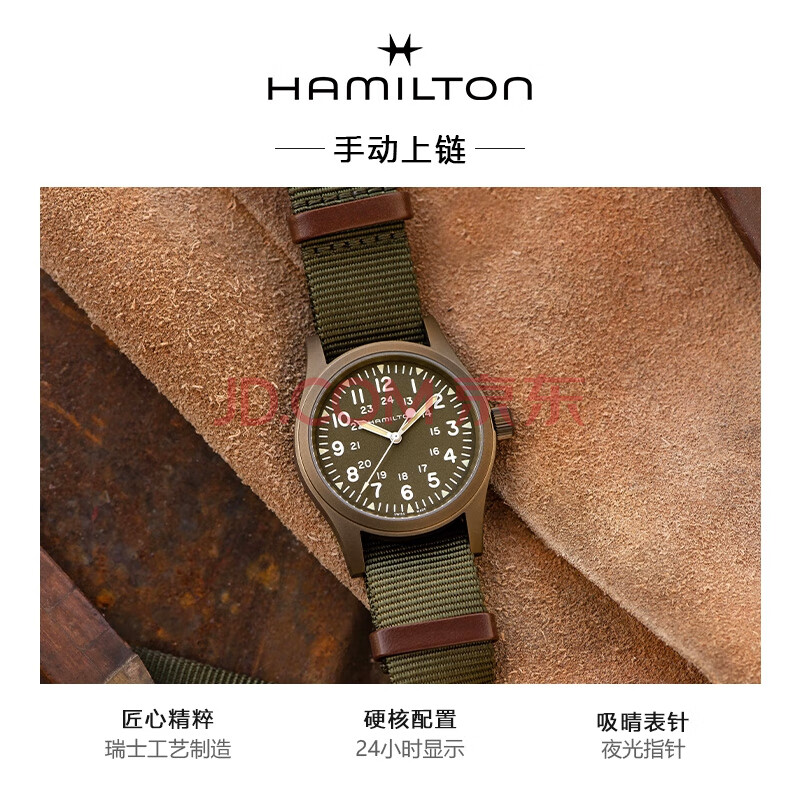 商品相册:汉米尔顿(Hamilton)卡其野战手动上链机械表38大地色表盘 瑞士手表军表男士机械表第