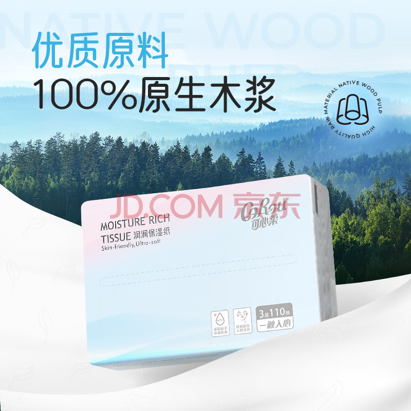 商品相册:可心柔 (V9 COROU)抽纸 保湿纸巾 3层110抽*18包M码 云柔巾餐巾纸第