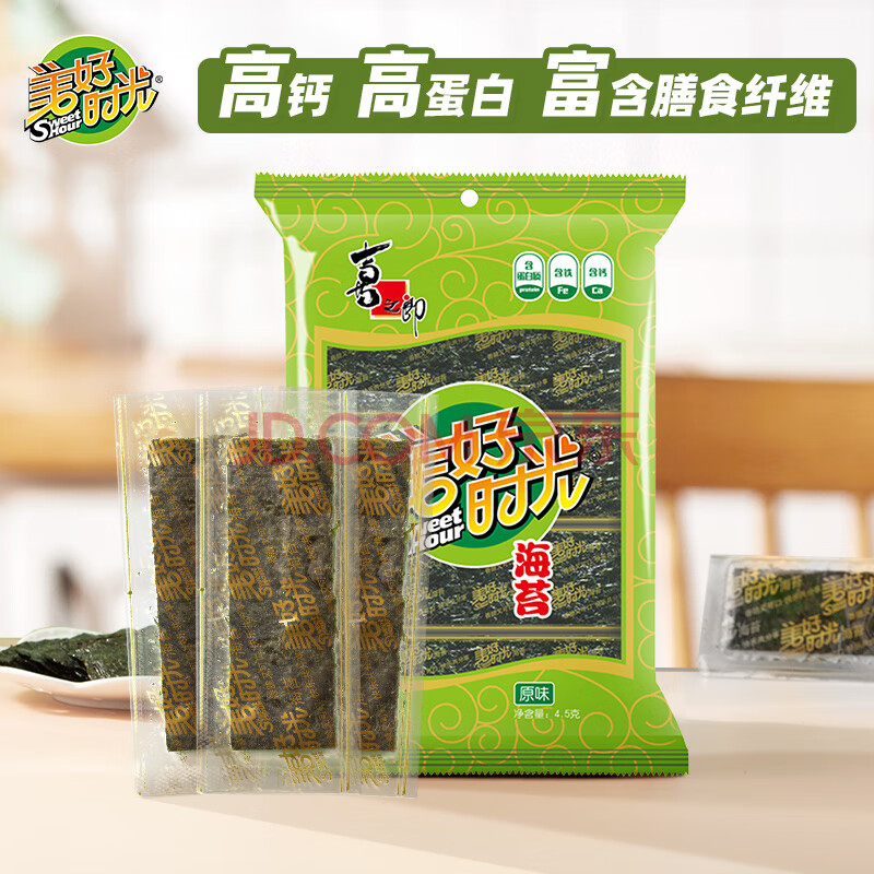 商品相册:美好时光原味海苔4.5g*6袋27g即食寿司海苔 儿童休闲解馋小零食礼物第1张/共7