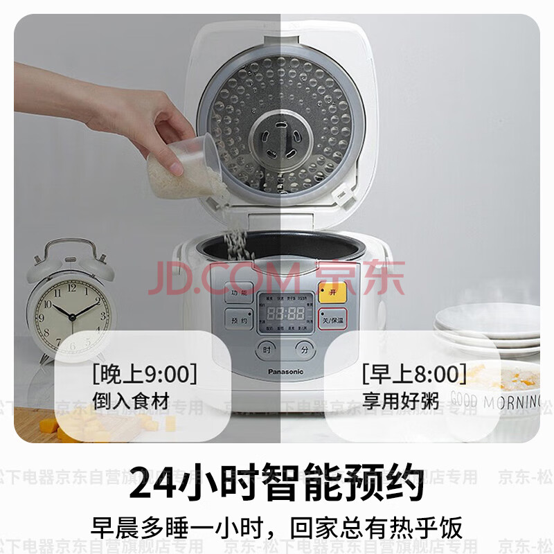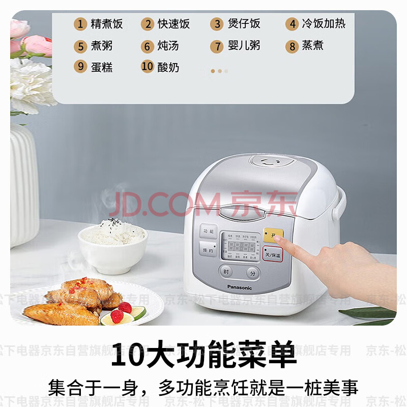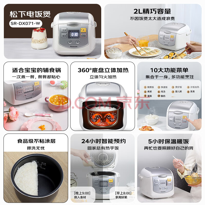 商品相册:松下(Panasonic)迷你电饭煲1-2人多功能小型电饭锅家用智能预约煮饭不粘锅2升容量SR-DX071-W第