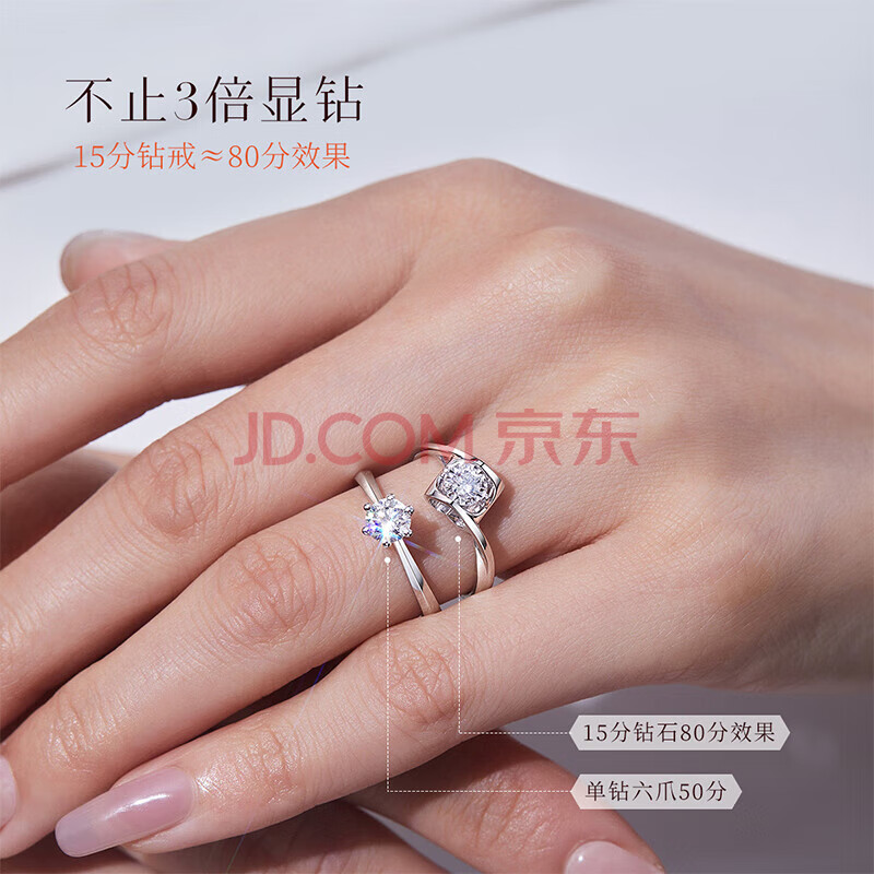 商品相册:喜钻生日礼物铂金天使之吻活口可调节钻戒结婚求婚钻石戒指第