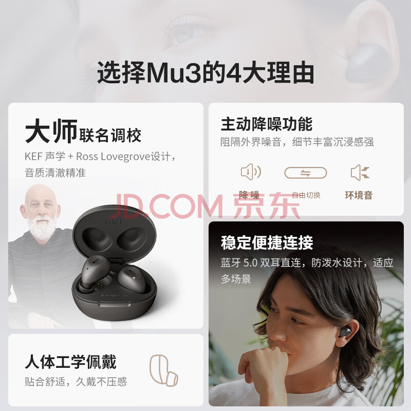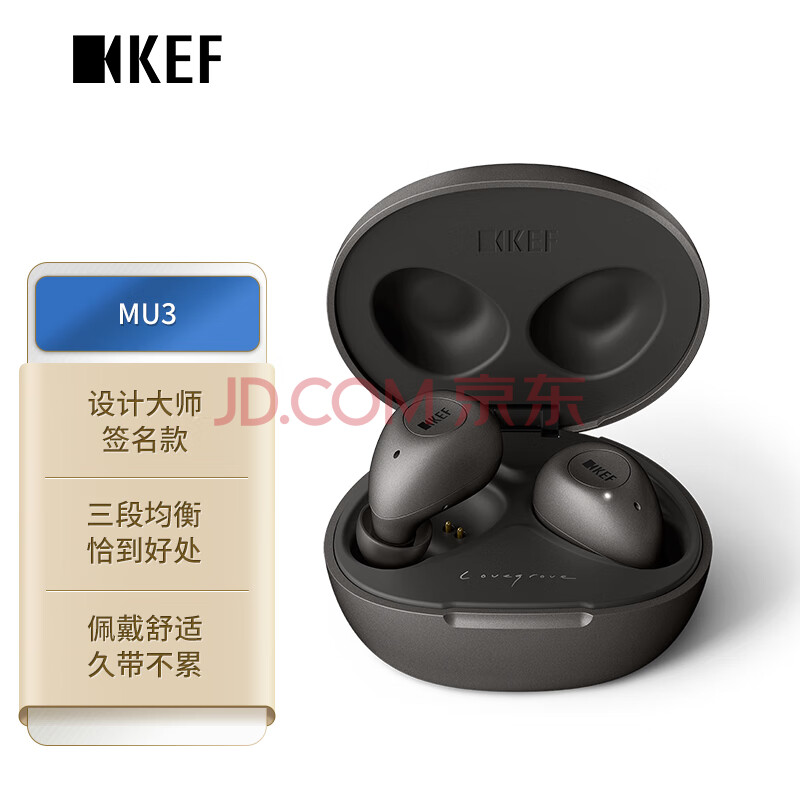 商品相册:KEF Mu3 Wireless 真无线蓝牙耳机 主动降噪 IPX5入耳式跑步运动音乐HiFi耳机 礼物 炭灰色第