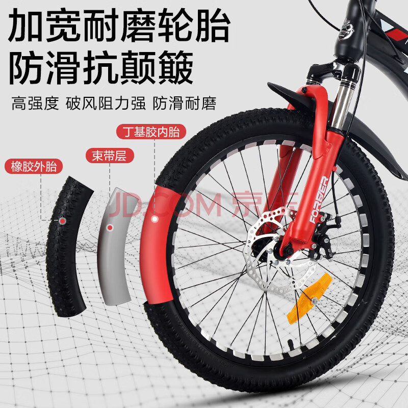 商品相册:永久(FOREVER)儿童自行车变速山地车中小学生男女6-15岁赛车青少年 黑红色 18寸第
