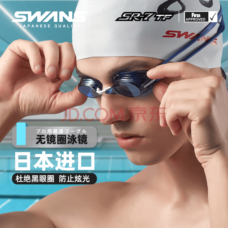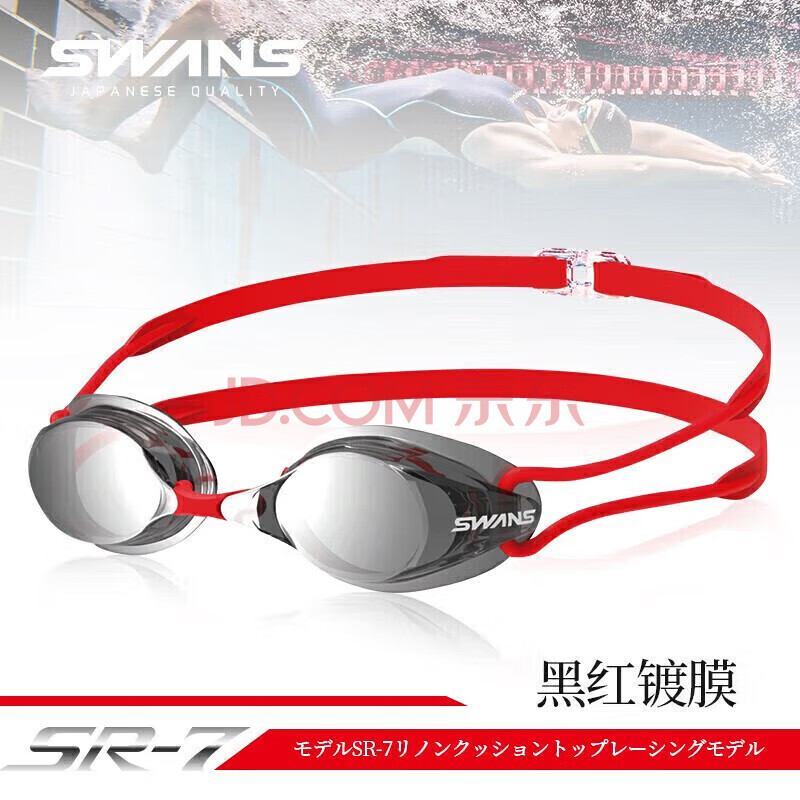 商品相册:SWANS泳镜日本进口防水防雾高清无胶圈女镀膜游泳镜专业竞速男SR7M黑红第