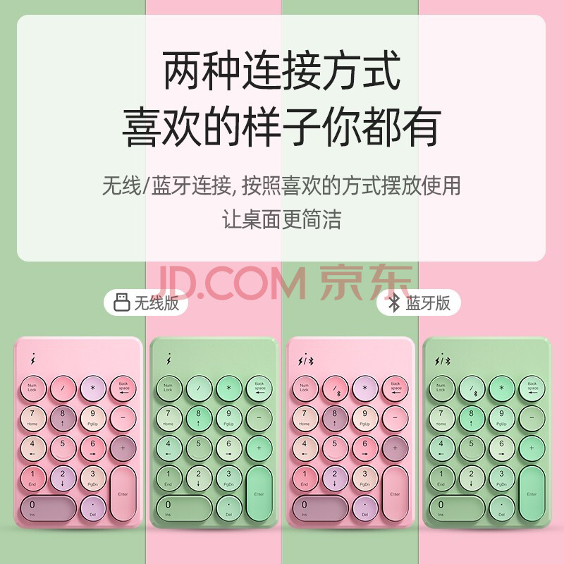 商品相册:B.O.W航世 K155 无线数字小键盘 财务会计办公 18键 复古圆形键帽 外接笔记本台式通用键盘 缤纷绿第