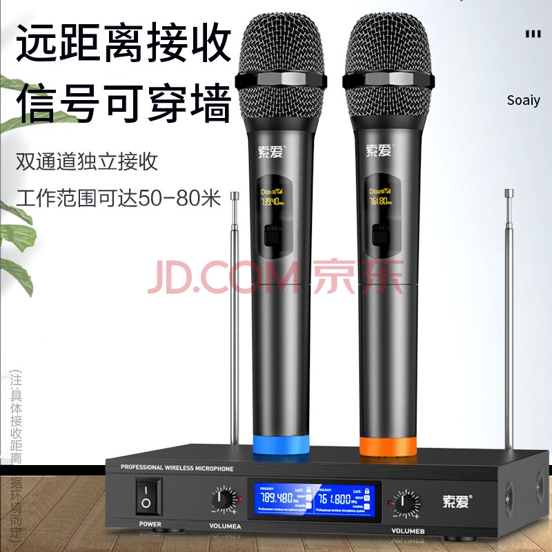 商品相册:索爱(soaiy)SA-WK2麦克风家庭KTV唱歌K歌音响会议主持演讲金属机身一拖二无线话筒第