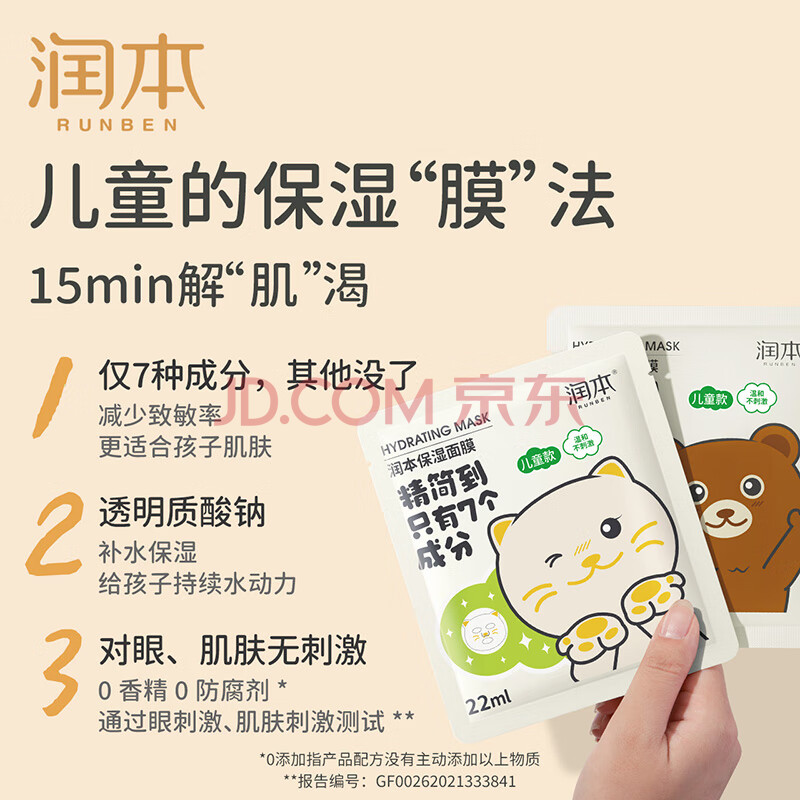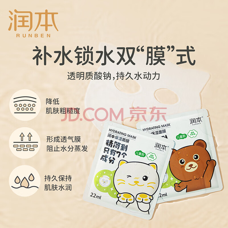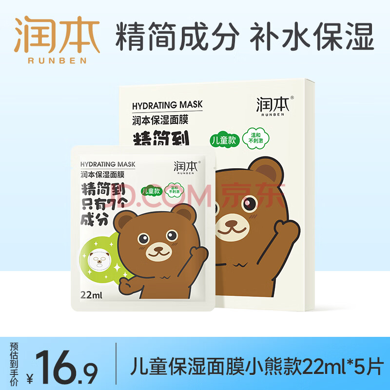 商品相册:润本儿童面膜5片*1盒3-6-12岁男童女童学生宝宝补水保湿面膜-小熊款第1张/共8