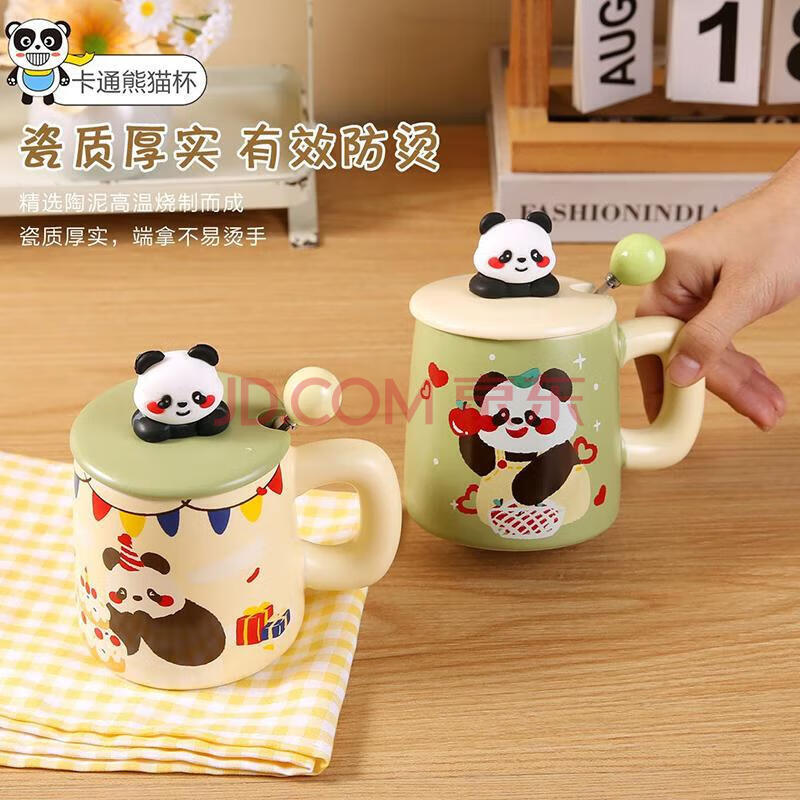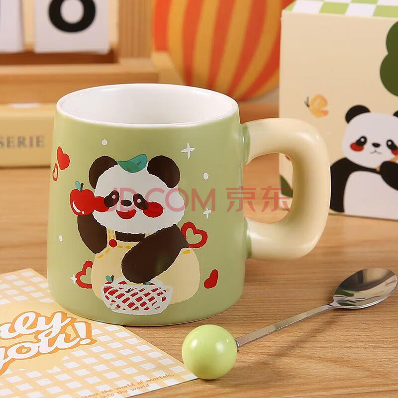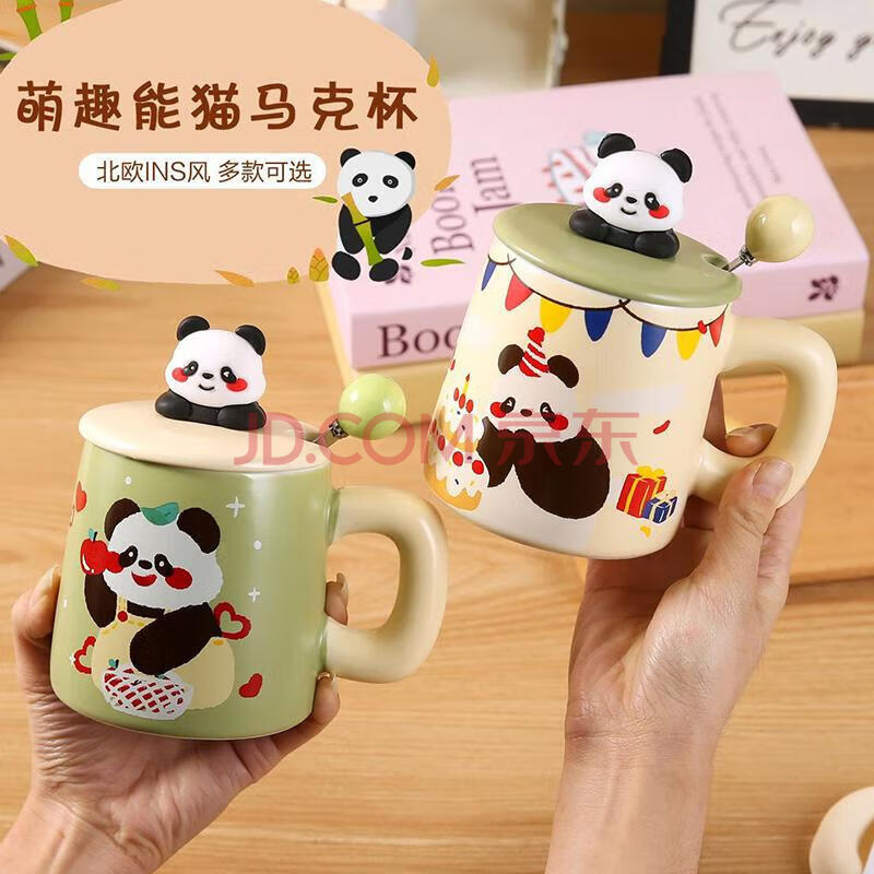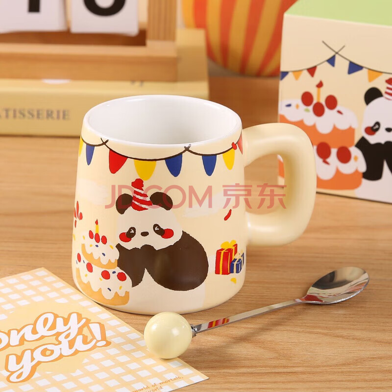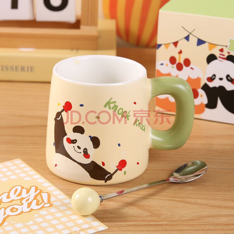 商品相册:传旗陶瓷马克杯带勺盖咖啡杯早餐牛奶杯情侣陶瓷杯熊猫盲盒杯子礼盒装第