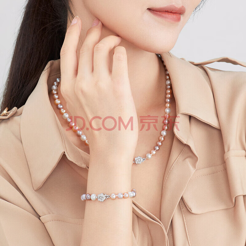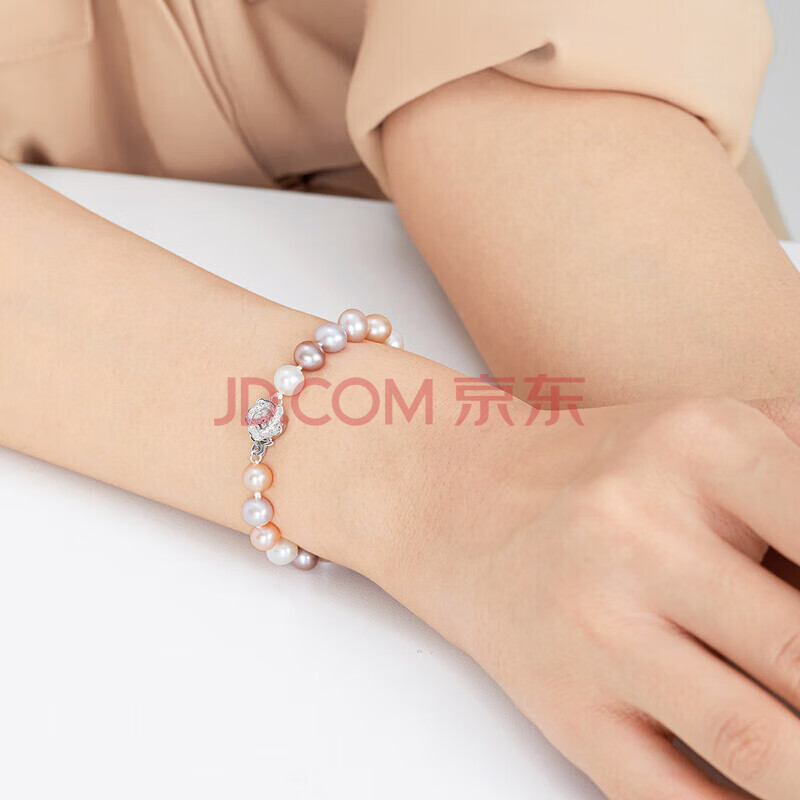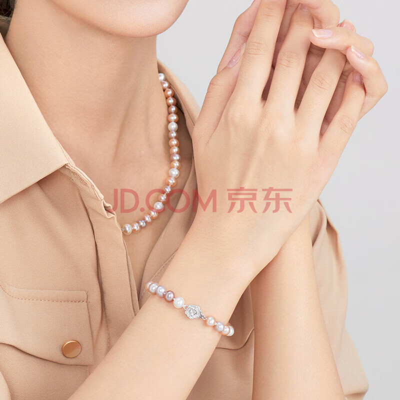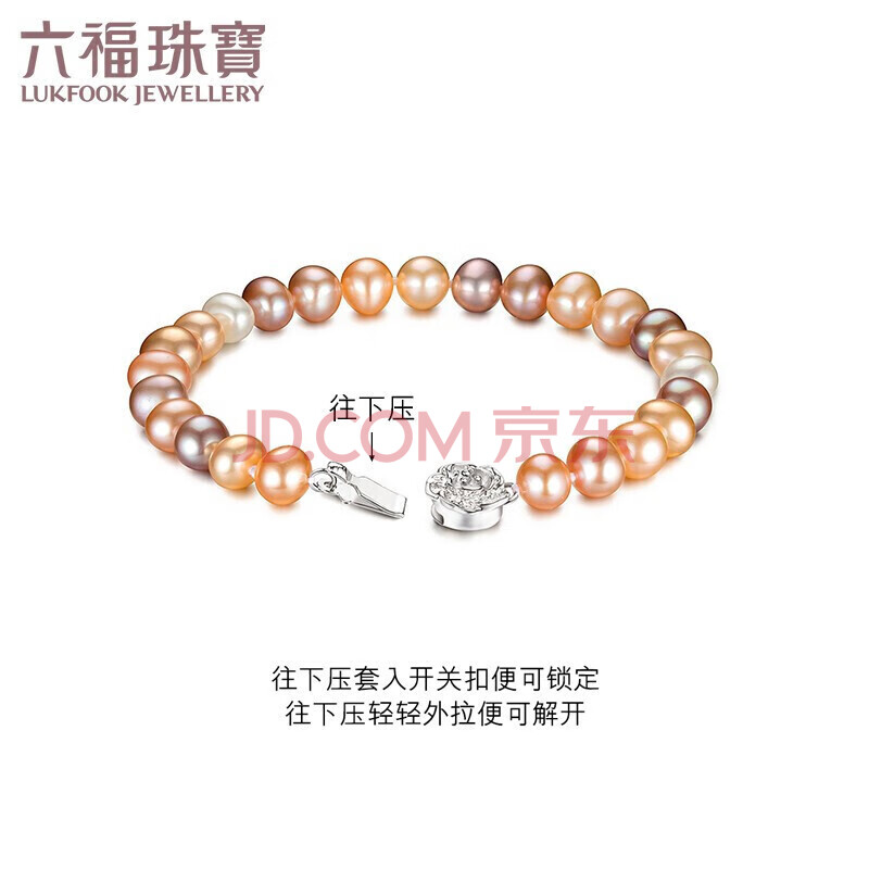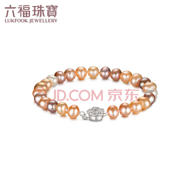 商品相册:六福珠宝 淡水珍珠手链Ag925花形扣幻彩珍珠手串礼物 总重约10.68克第
