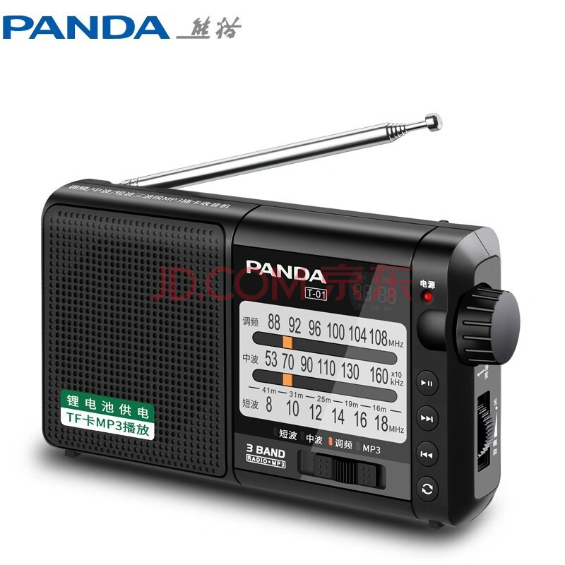 商品相册:熊猫(PANDA)T-01 老人礼物礼品迷你三波段半导体 全波段收音机 插卡锂电数码音响(黑色)第1张/共5