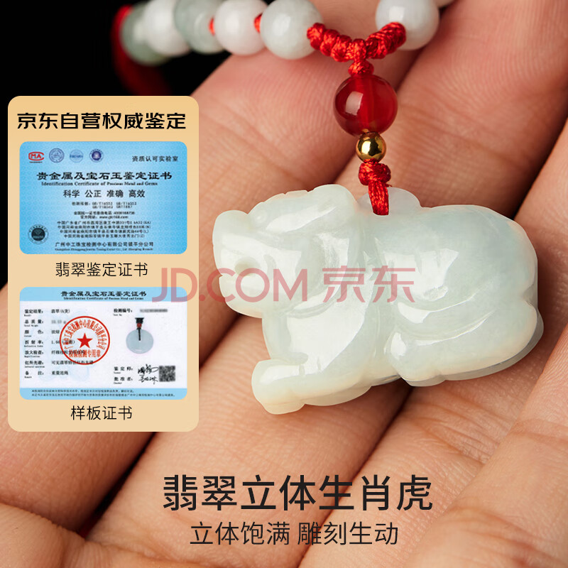 商品相册:曼丽翠翡翠生肖虎吊坠项链立体十二生肖玉项链男女款礼物附证书第