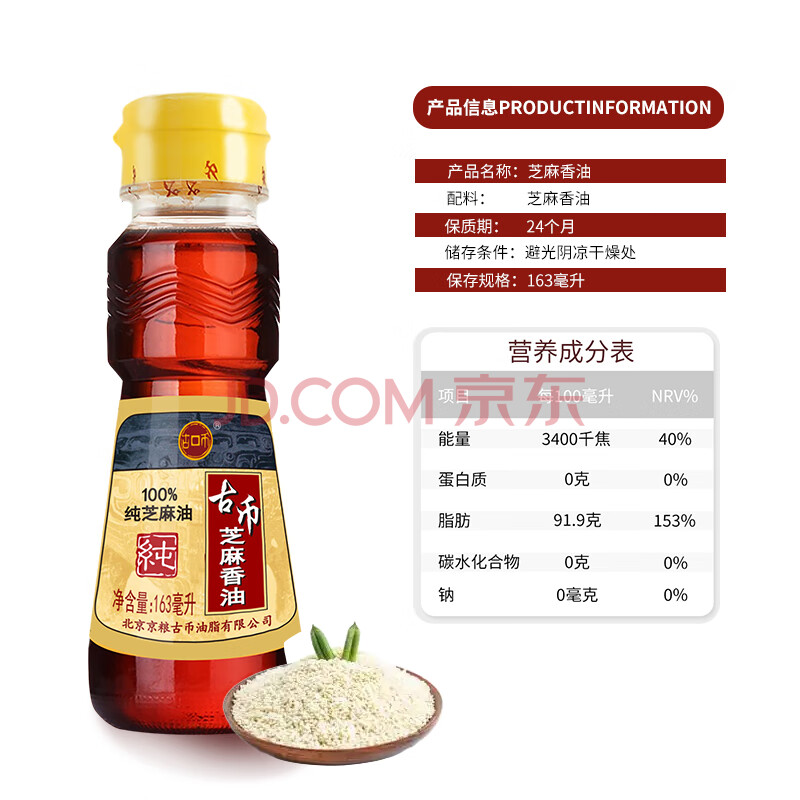 商品相册:古币 芝麻香油 纯芝麻油 163ml小瓶 凉拌调味火锅油碟 北京老字号第
