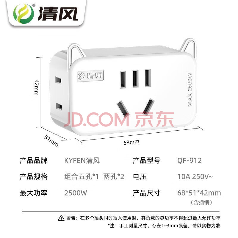 商品相册:清风(kyfen)插座一转三旅行转接头拓展插排插板无线多用功能家用 QF-912第