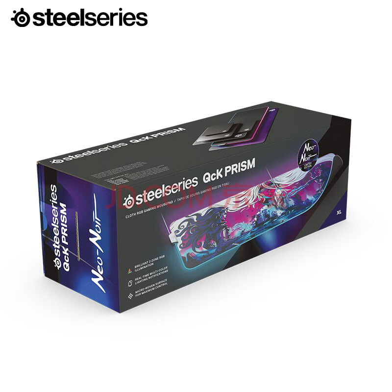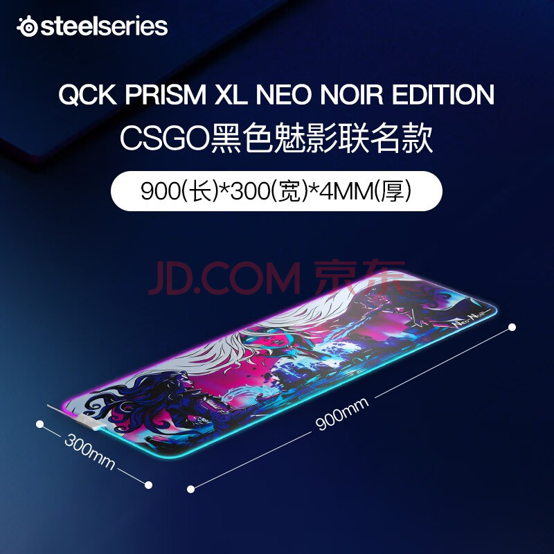 商品相册:赛睿(SteelSeries)Qck Prism Neo Noir 900*300*4mm 游戏鼠电竞鼠标垫 双区域RGB CSGO联名款炫彩RGB版大桌垫第