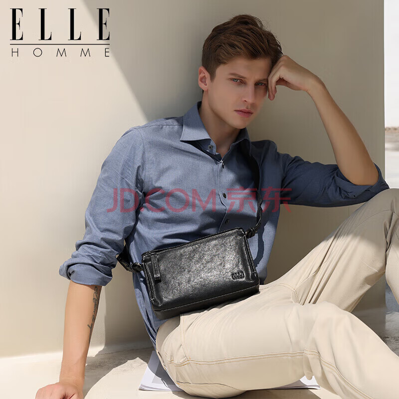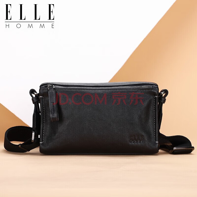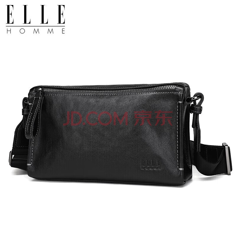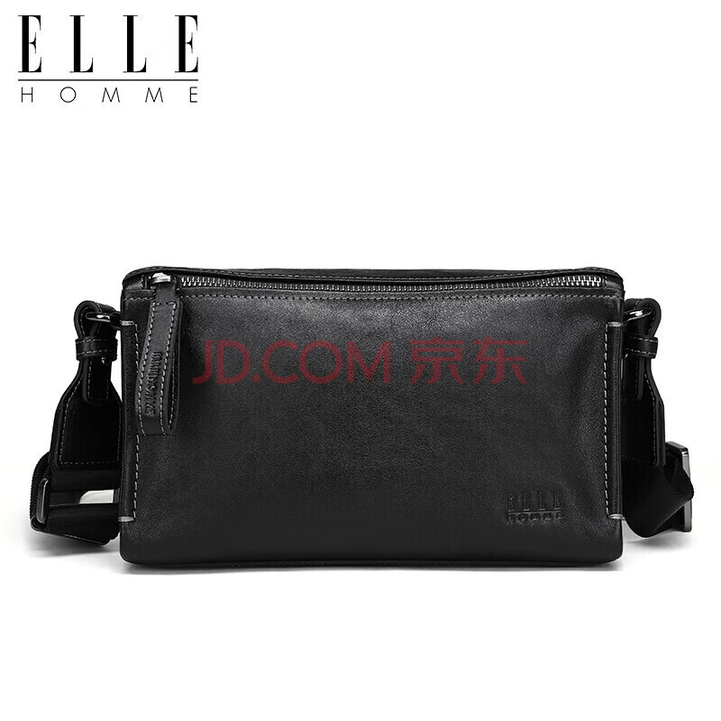 商品相册:ELLE HOMME男士斜挎包 时尚真皮单肩包 休闲大容量小挎包牛皮男包206730黑色生日礼物送男友第