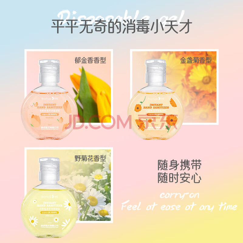 商品相册:HANASS 免洗洗手液 手部消毒液 消毒凝胶 免洗速干 便携小瓶装30g*7瓶第