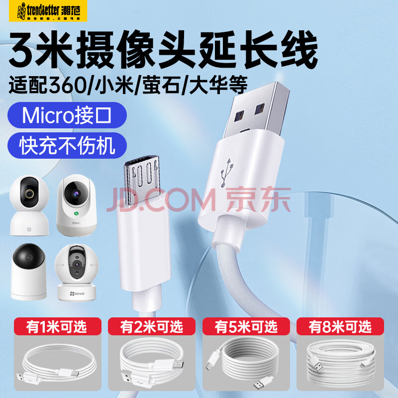 商品相册:trendsetter 适用小米摄像头电源延长线3米小白360华为海雀tplink创维大华乔安乐橙萤石监控电源线安卓充电线第