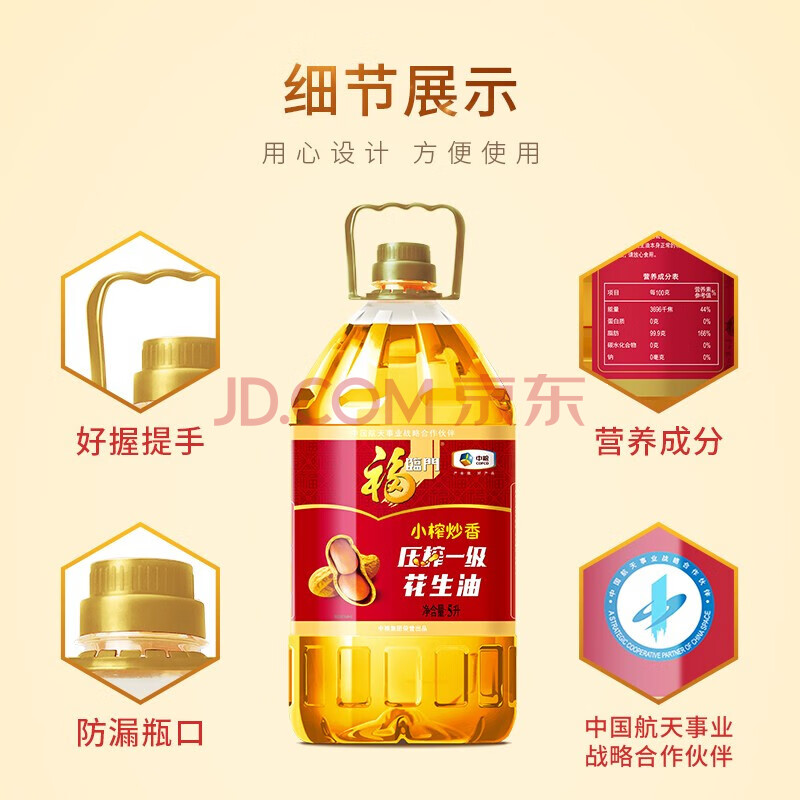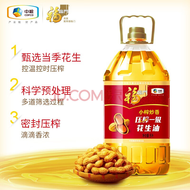 商品相册:中粮福临门 食用油小榨炒香压榨一级花生油5L第