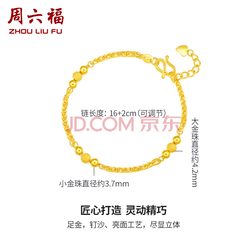 商品相册:周六福足金999黄金手链女金珠新年生日礼物计价AA072461 约5.77g 16+2cm第