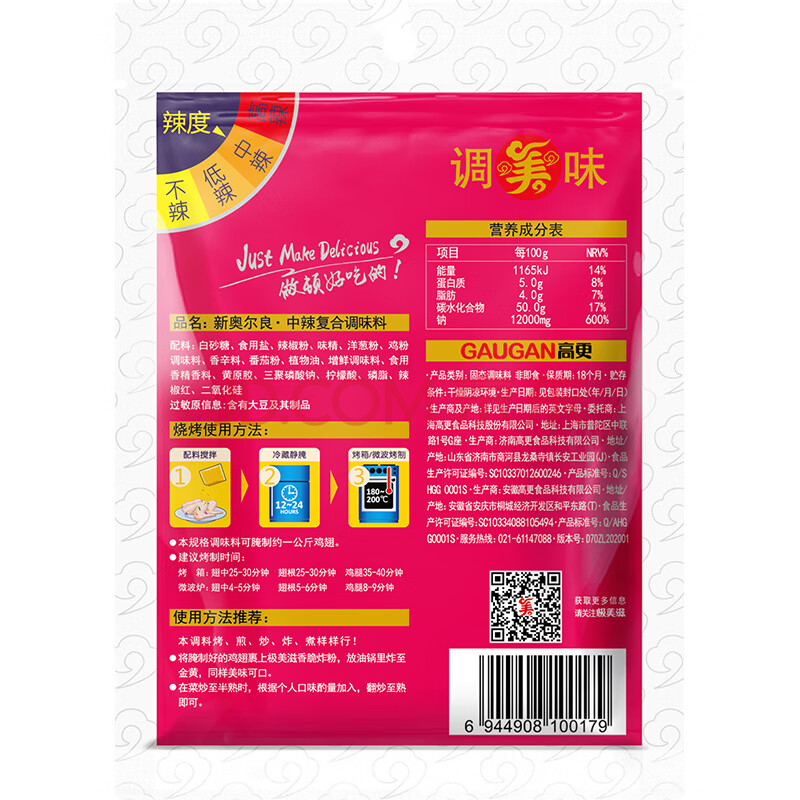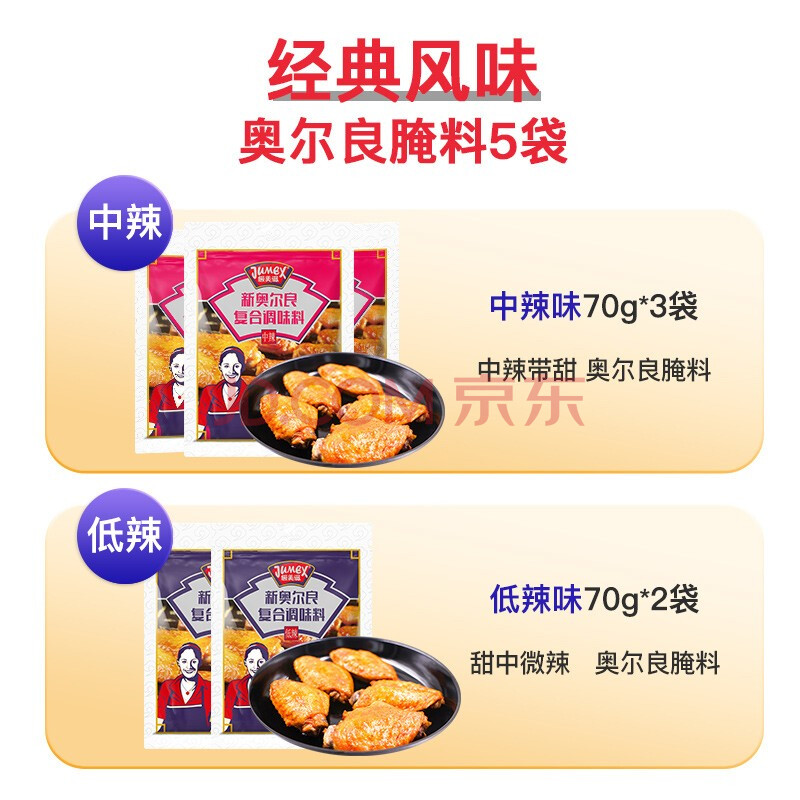 商品相册:极美滋复合调味料 中辣+低辣70g*5包 新奥尔良烤翅腌料烧烤调料调味第1张/共7