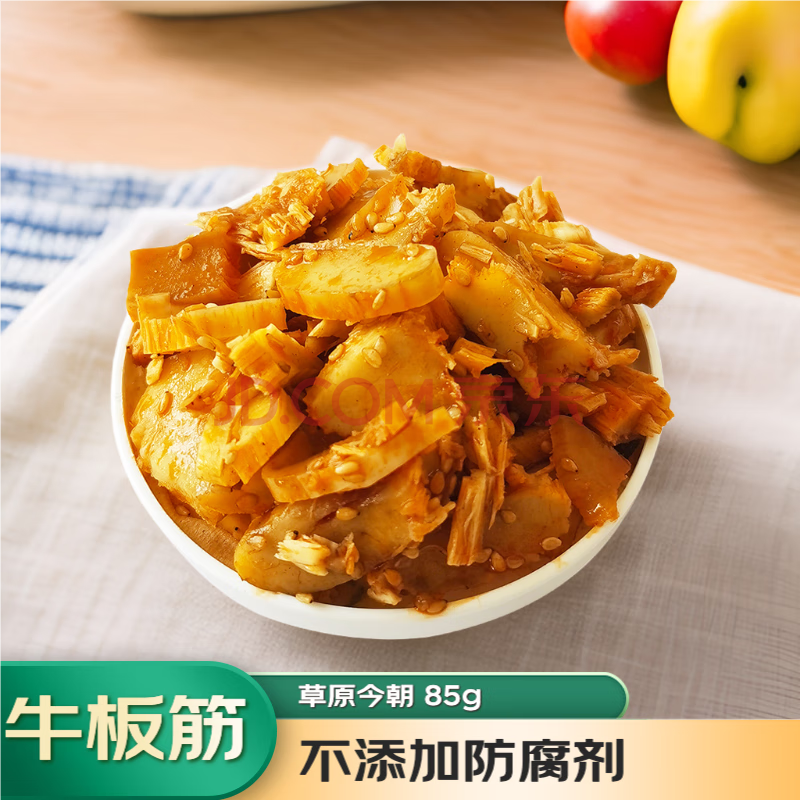 商品相册:草原今朝 牛板筋烧烤味85g 牛蹄筋零食 内蒙风味特产 休闲小吃第