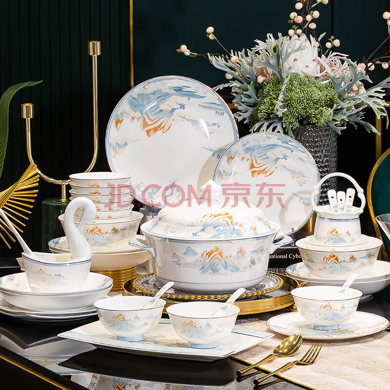 商品相册:浩雅86头景德镇陶瓷餐具碗碟套装碗具碗盘勺筷整套乔迁鸿运当头第