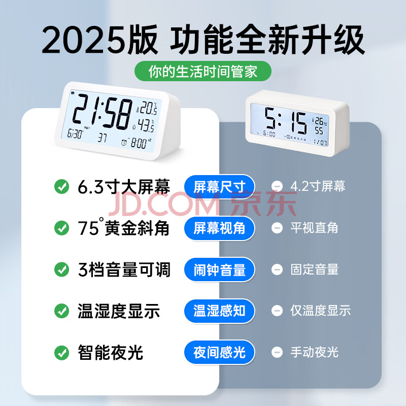 商品相册:码仕闹钟学生温湿度计大屏充电电子智能夜光儿童起床专用神器LCD床头钟开学必备Q198白开学季礼物第