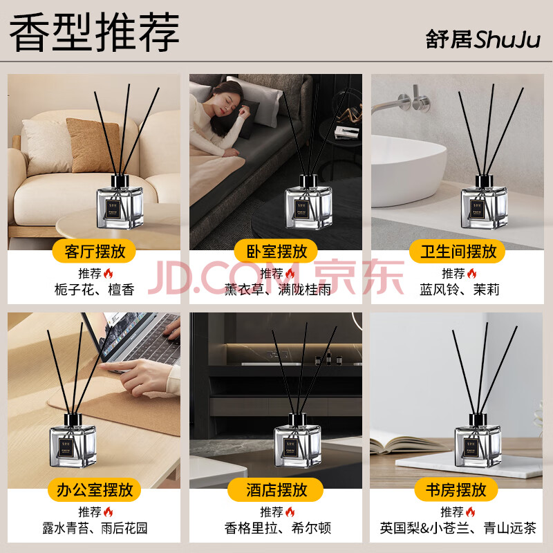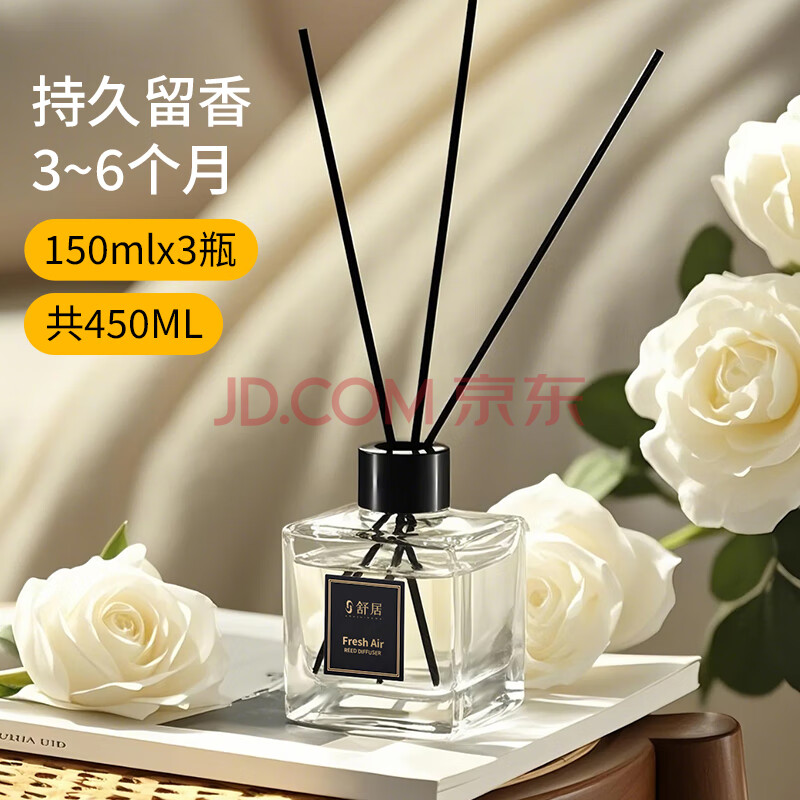 商品相册:舒居 藤条无火香薰(三瓶装)室内卧室房间厕所香氛精油空气清新剂450ml第