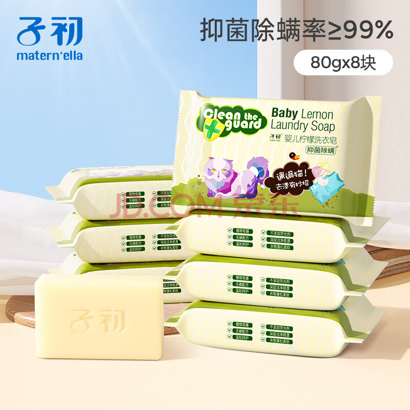 商品相册:子初婴儿洗衣皂肥皂儿童洗衣皂宝宝尿布皂内衣皂柠檬洗衣皂80g*8包第
